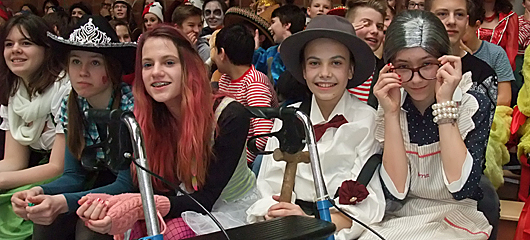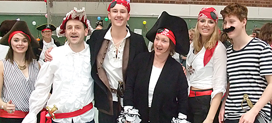 12.02.15 - Piraten – wild und frei. Unter diesem Motto feierte das Ernst-Mach-Gymnasium traditionell an Weiberfastnacht den Auftakt zum rheinischen Straßenkarneval. Schülerinnen und Schüler von der Klasse 5 bis in die Oberstufe präsentierten in der prall gefüllten Sporthalle ein buntes, phantasievolles Programm, in der insbesondere die kreativen Tanzauftritte für Begeisterung sorgten.