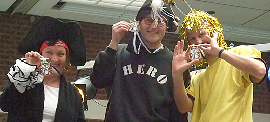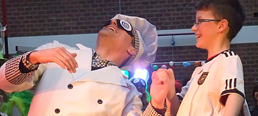 Den Löwenanteil am Gelingen der Veranstaltung hatte einmal mehr die Schülervertretung des EMG, die in Natalie, Simon und Meli nicht nur talentierte Moderatoren stellte, sondern – unterstützt von den EMG-Karnevalsaktivisten Bernhard Streerath und Thomas Knechten – mit ihren Vertetern Elvira, Pauline und Sophie auch die organisatorischen Fäden in der Hand hielt.